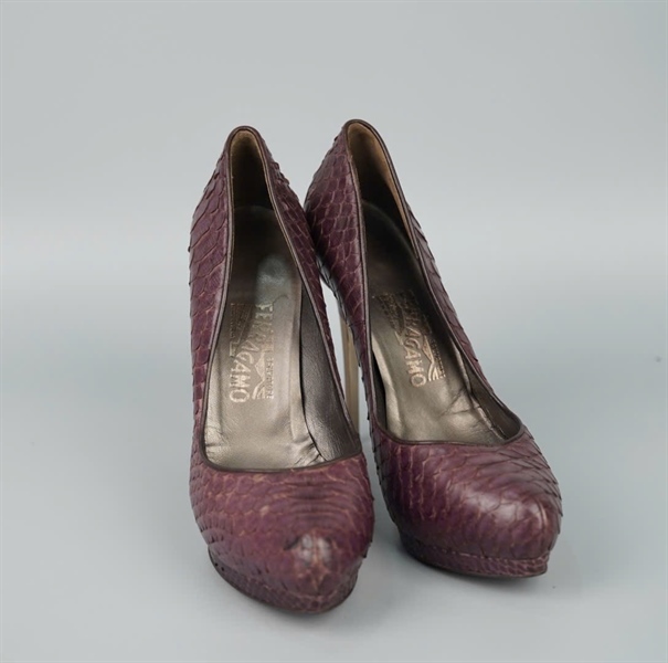 Giày Salvatore tím da trăn đế 15p sz7.5 KG+